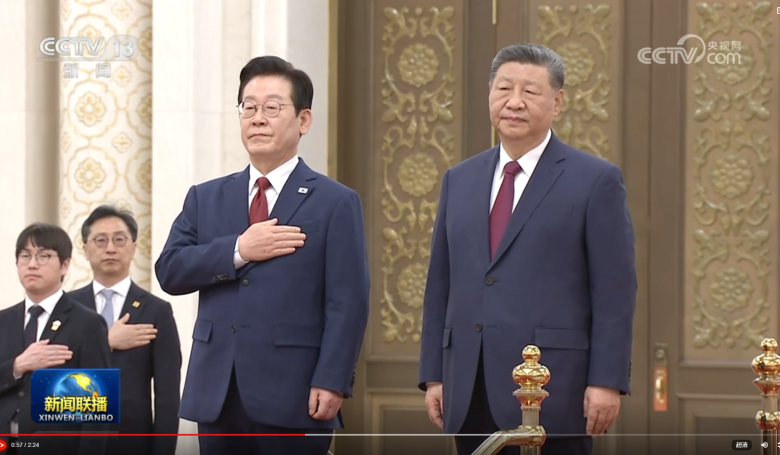 国家主席习近平5日下午在人民大会堂北大厅举行仪式,欢迎韩国总统李在明对我国进行国事访问。
